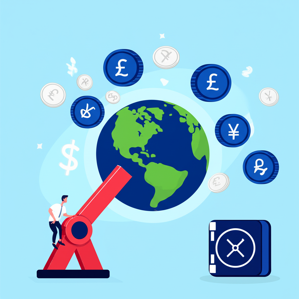 外匯保證金交易中槓桿機制與全球市場示意圖
