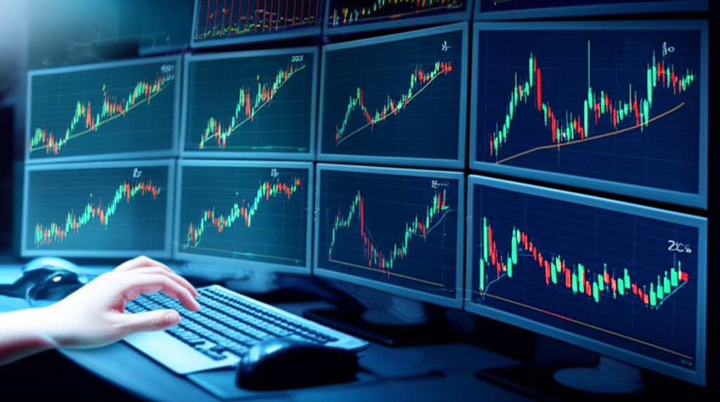 專注交易者使用多螢幕捕捉微小價格變動的插圖